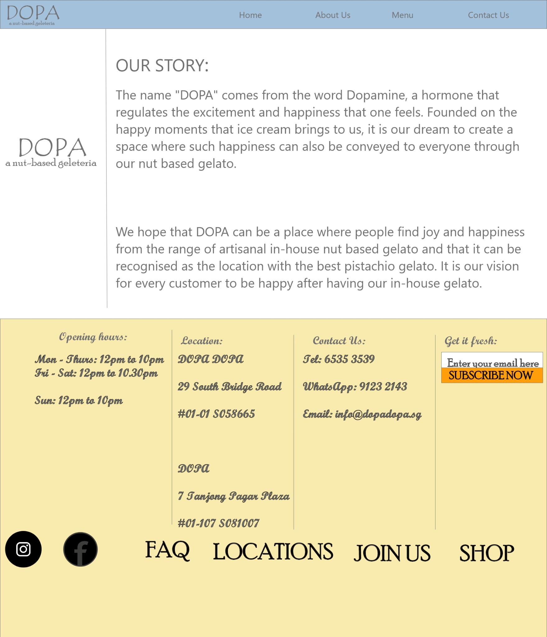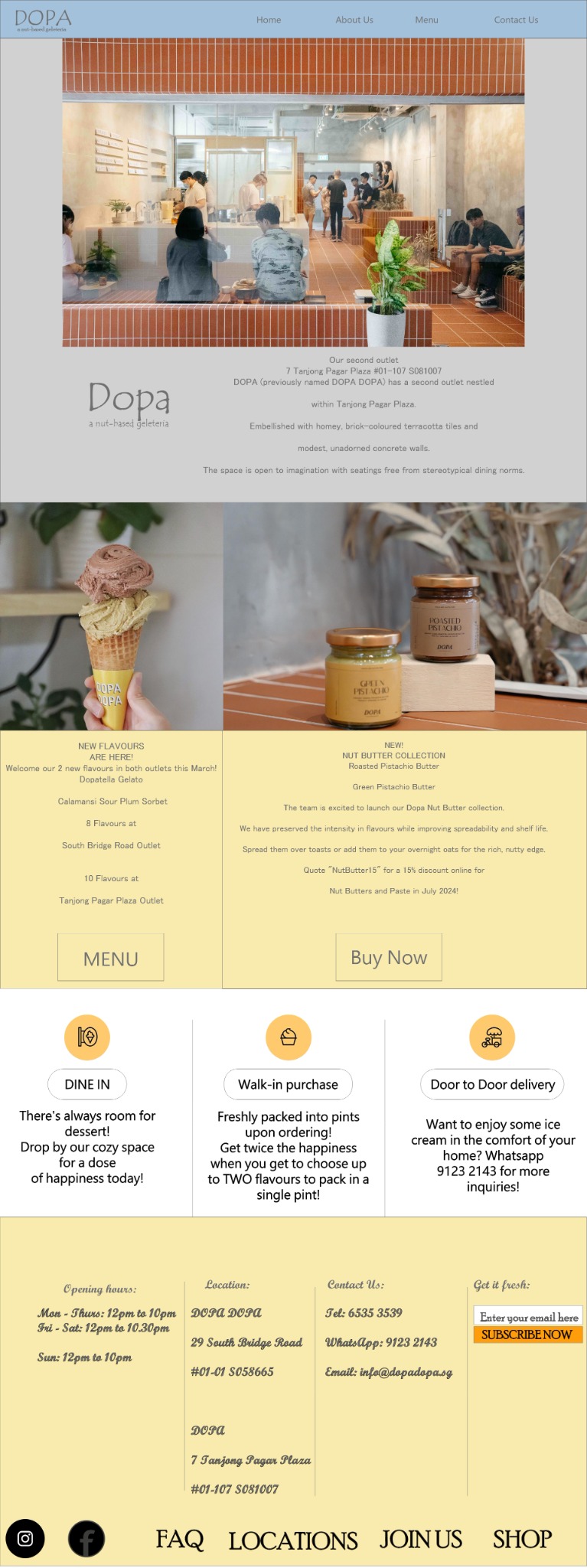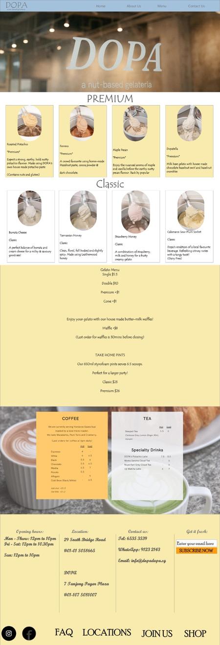 I was assigned to do do a website design in XD and DOPA was chosen it is a shop that sells gelato and using XD i have to figure out how to make the buttons functional so that it looks modern and convenient for the reader.